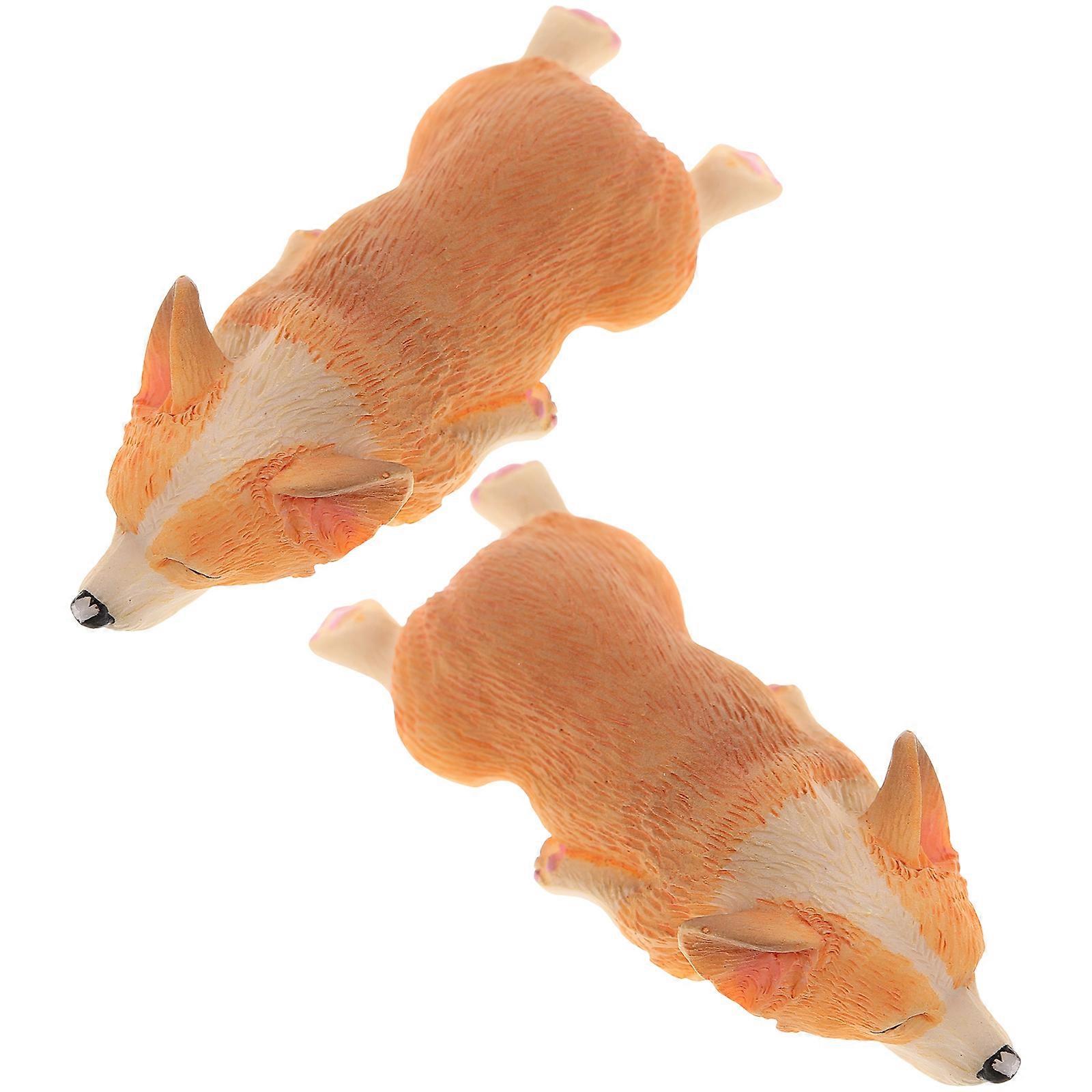 Dog Car Charm Resin Mini Dog Figurines Living Room Yellow 2Pcs
