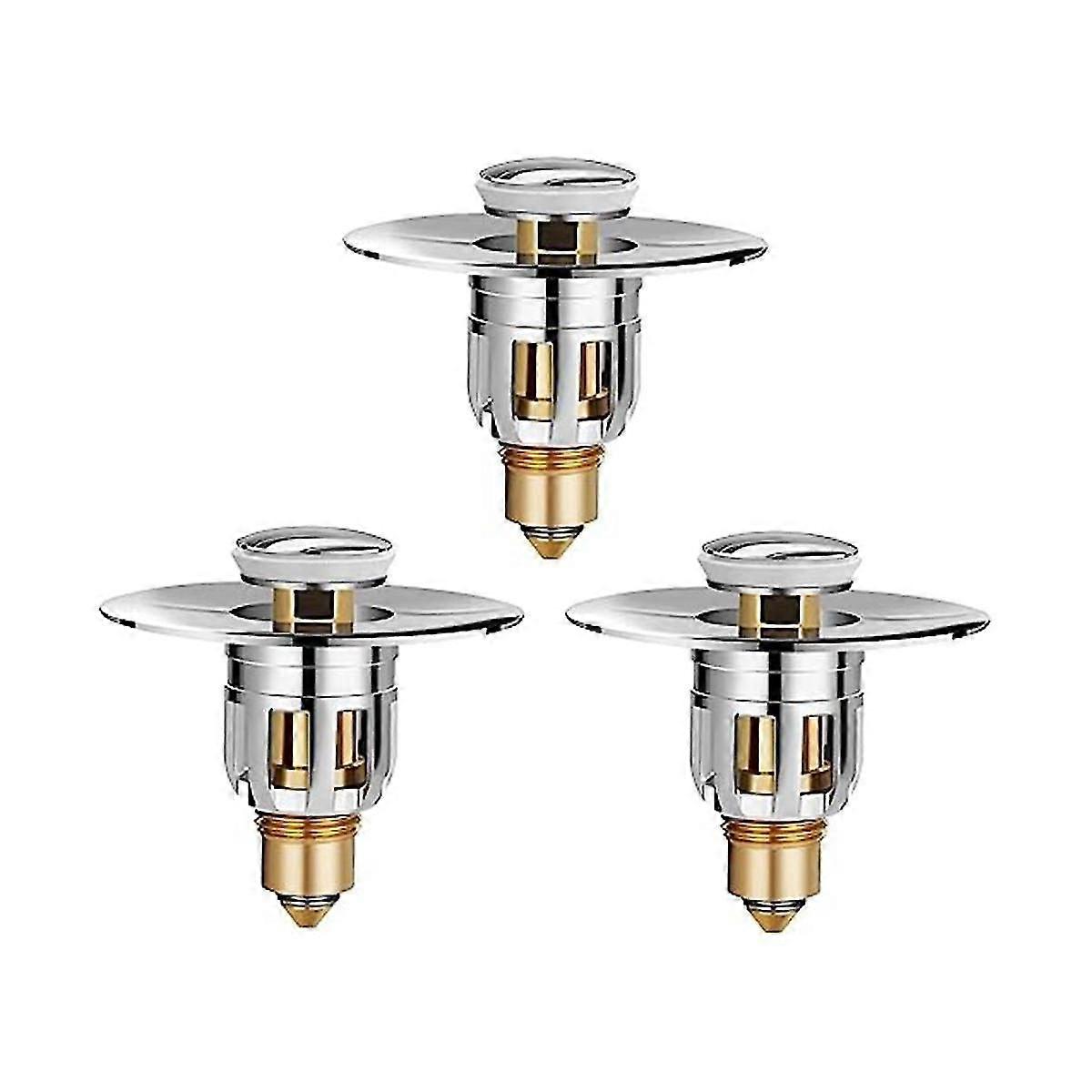 The sink drain strainer is designed with a new small diameter (1.02 inches inside diameter) to fit most sink drain holes (depth: . 1.89 inches) Made of anti-crack thickened high-quality stainless steel and brass material, durable, flat and comfortable to the touch, solid structure, can be used for a long time without cracking and leaking The upgraded pop-up sink drain plug has an anti-clog basket inside that collects hair and prevents drain clogs, your ring will never go down the drain again. Has a beautiful core thrust shape. Good resilience, fast water sealing and drainage with one press Tool-less installation, the pop-up drain is simple enough for anyone to install, just take out the old drain and insert the filter elements to complete the installation. Colour:Gold & Silver Material:brass+stainless steel Size:6x5x3cm Package Contents: 3 * drain plug Only the above package content, other products are not included. Note: Light reflection and different displays may cause the color of the item in the picture a little different from the real thing. The measurement allowed error is +/- 1-3cm.