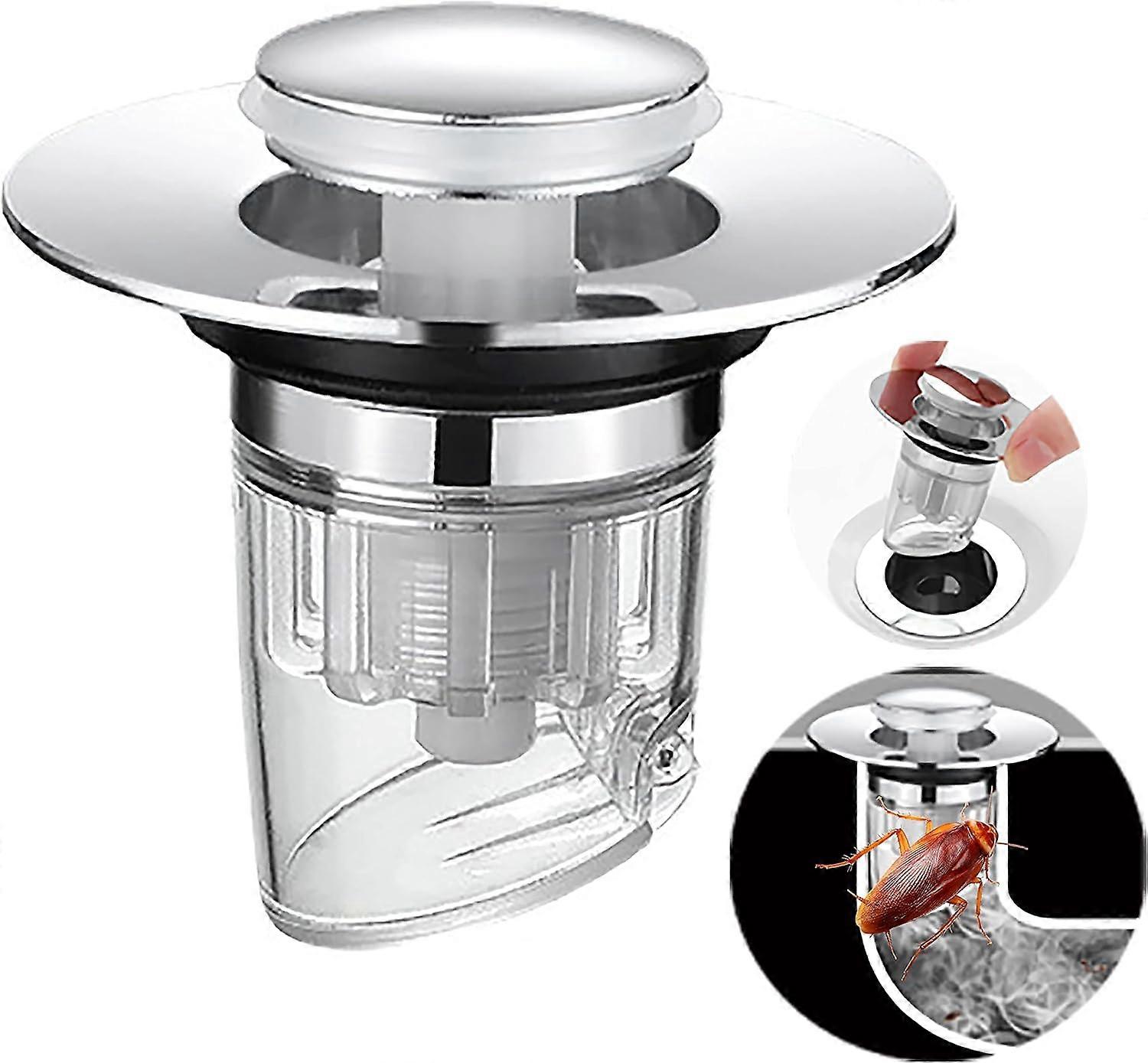 Bathroom Sink Stopper, 1.33~1.57 inch Pop Up Sink Drain Strainer with Basket, Basin Anti-Odor Anti Clogging Large Sink Drain Filter with Hair Catcher