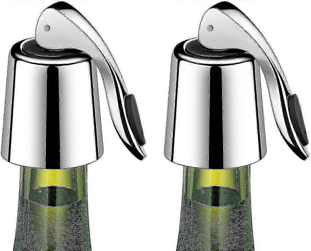 Stainless Steel Wine Bottle Stopper with Silicone Seal (2 Pack)