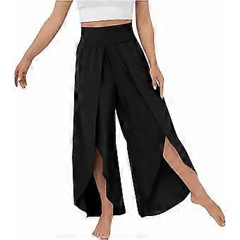 سروال يوغا نسائي عالي الخصر عريض الساق مع شقوق ، سروال قصر شاطئ غير رسمي للنساء