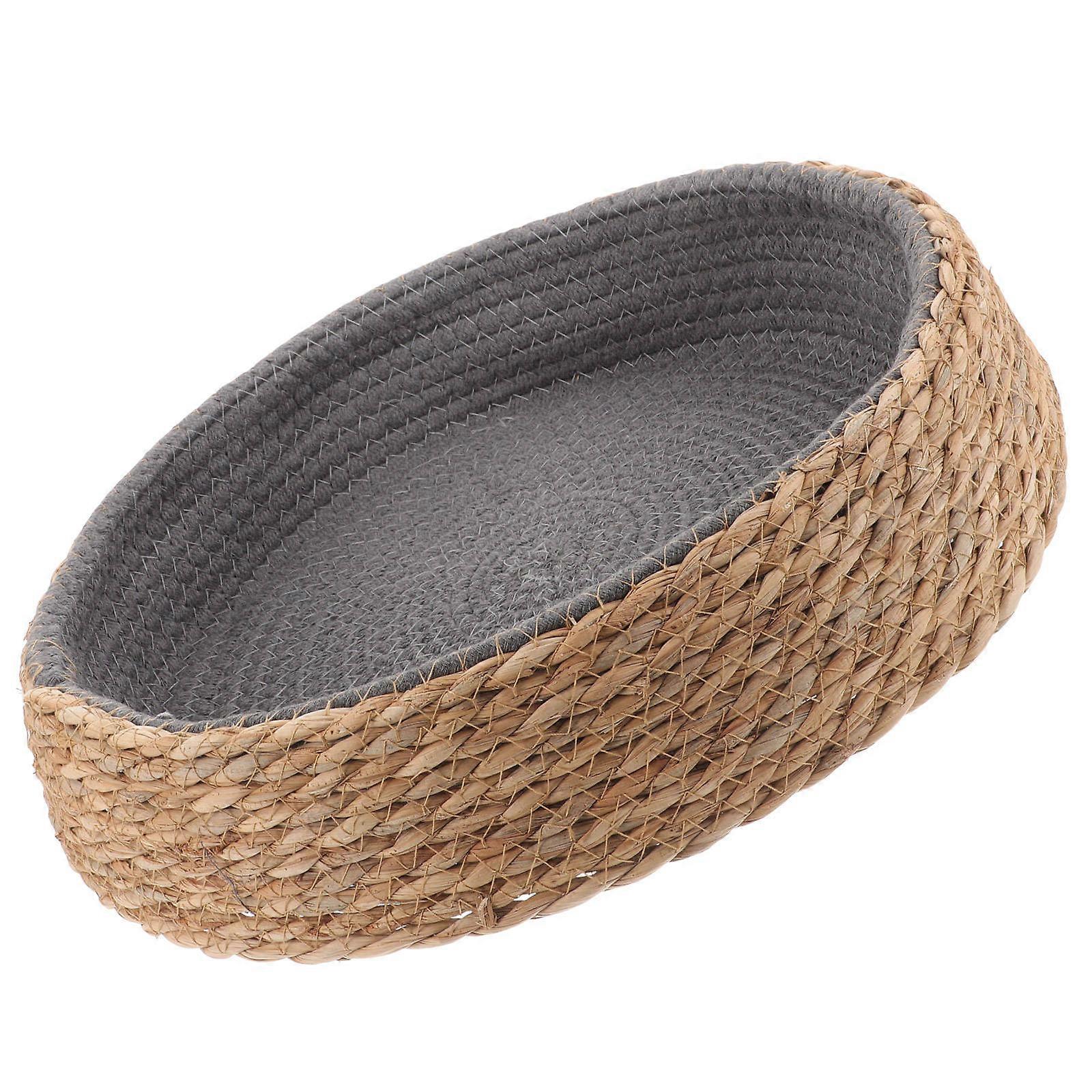 Natural Woven Round Pet Bed for Cats and Dogs, Breathable Handcrafted Nest Mat, Scratch Resistant Cozy Sleeping Basket for Small Pets, Deep Grey