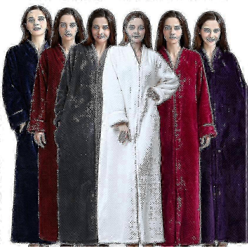 Zipper Bathrobe For Womens Flannel Fleece Robes Warm Housecoat Nightgown