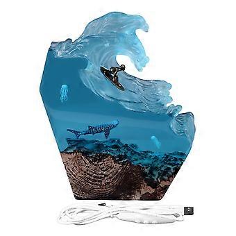 Desktop Sea Wave Decoration Delicate Resin Lamp Night Light for Bedroom Office Birthday Anniversary Gift 5V