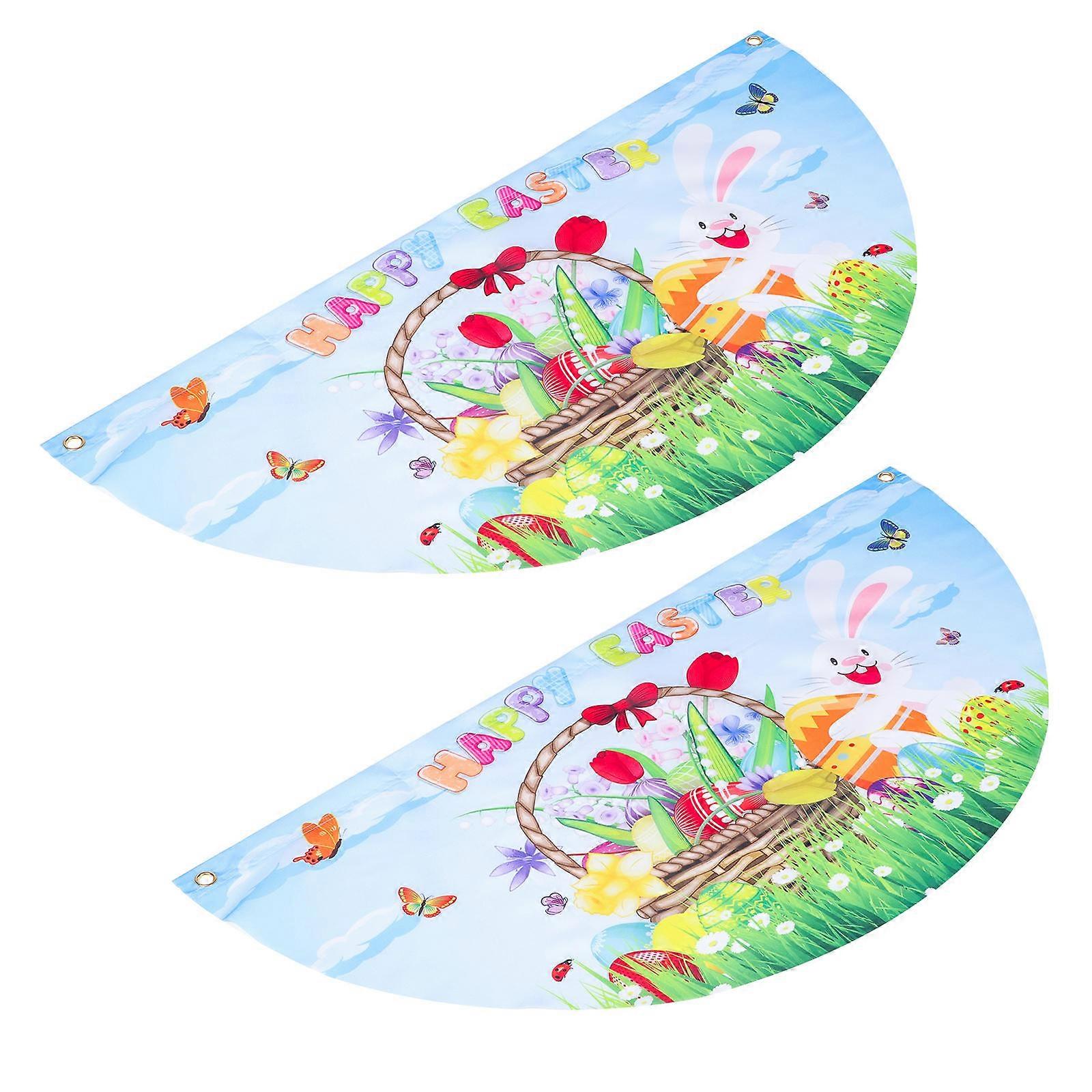 Happy Easter Festival Banner 2Pcs Indoor Outdoor Decoration Garden Flags Fine Craftsmanship For Balcony And Yard Use