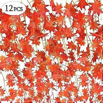 Fall Wreath, 12 Strands (90 Feet) Artificial Maple Leaves Red Maple Vine Ivy Greenery Fall Leaves Wreath