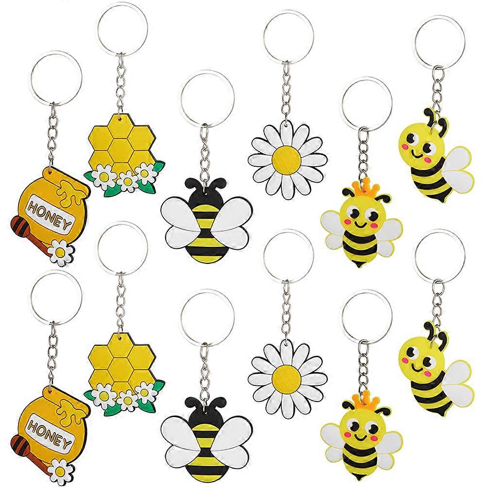 Cute Bee Keychains 12pcs Adorable Flower Keyrings for Bags, Backpack Pendants, Party Favors for Bee Lovers, Eye Catching Decor