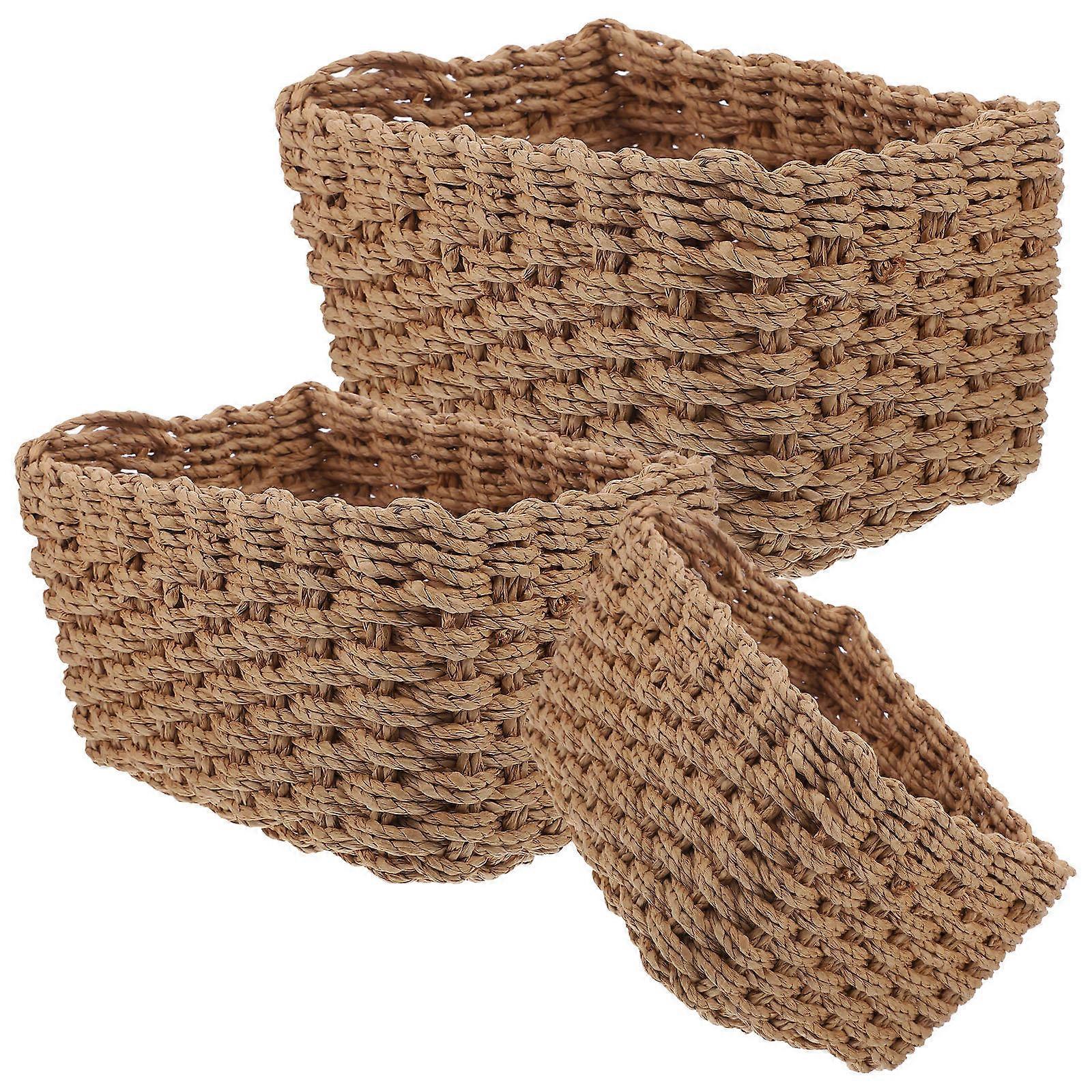 Rectangular Woven Baskets 3Pcs For Office Supply Storage Measuring 10.2X7.9X5.9In Handmade Woven Style