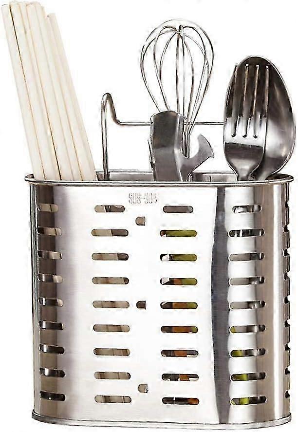 Sink Drainer Basket Stainless Steel Cutlery Holder - Wall Mount Cutlery Basket - Kitchen Organizer - Silver