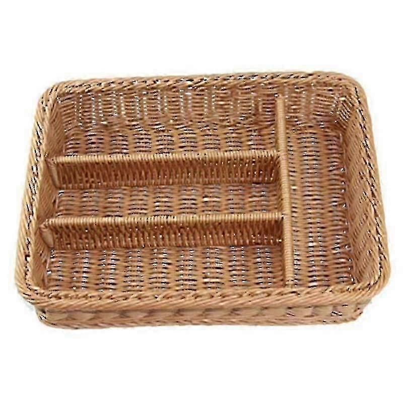 Rattan Cutlery Storage Basket with 4 Compartments Kitchen Drawers -