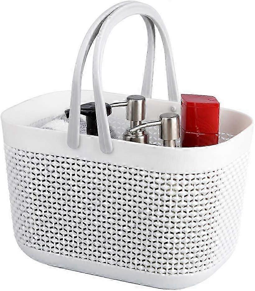 Plastic Storage Basket with Handle Bathroom and Kitchen Shower Rack Storage Box (White)