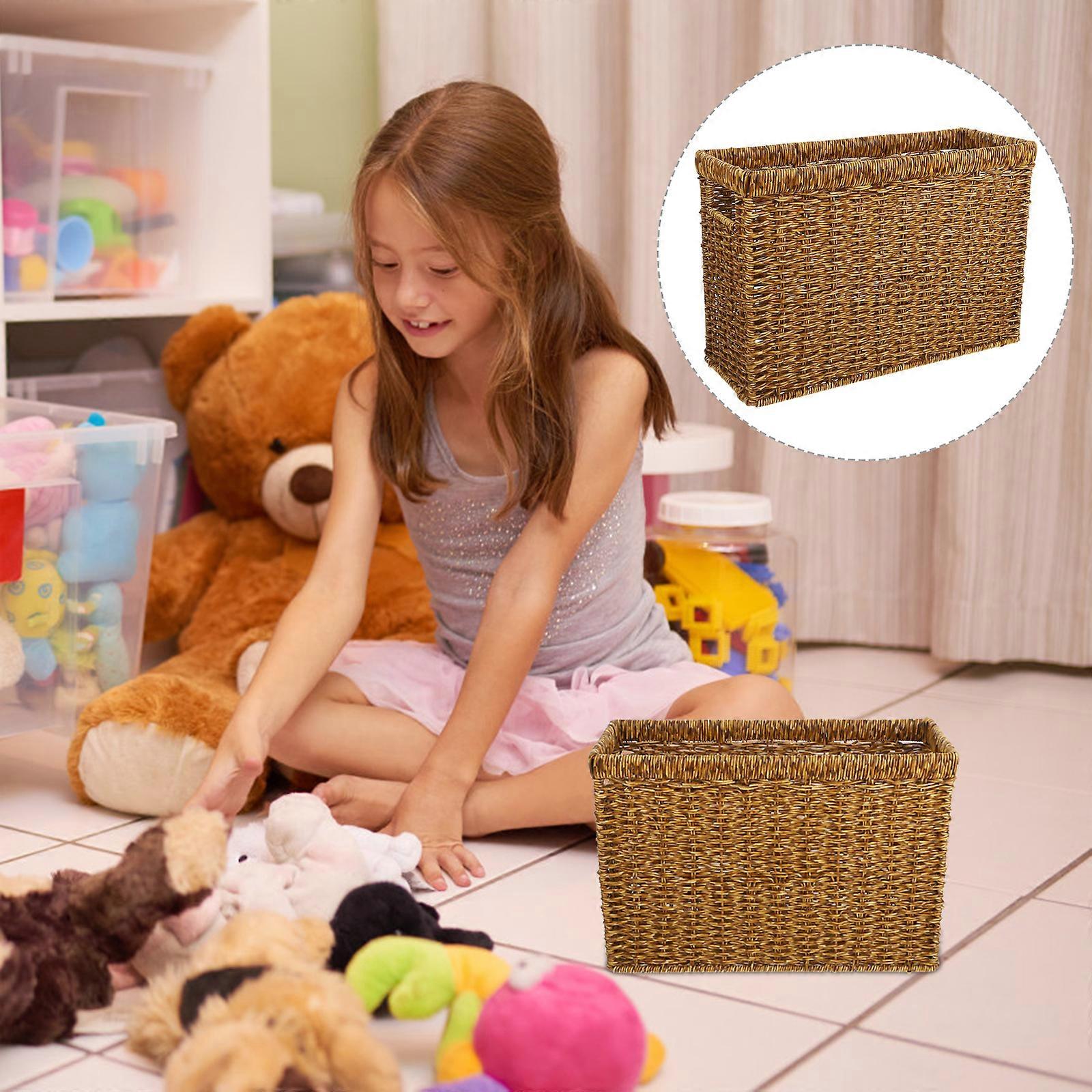 Desk Storage Basket Woven Basket with Handle Organizing Basket Household Sundries Basket