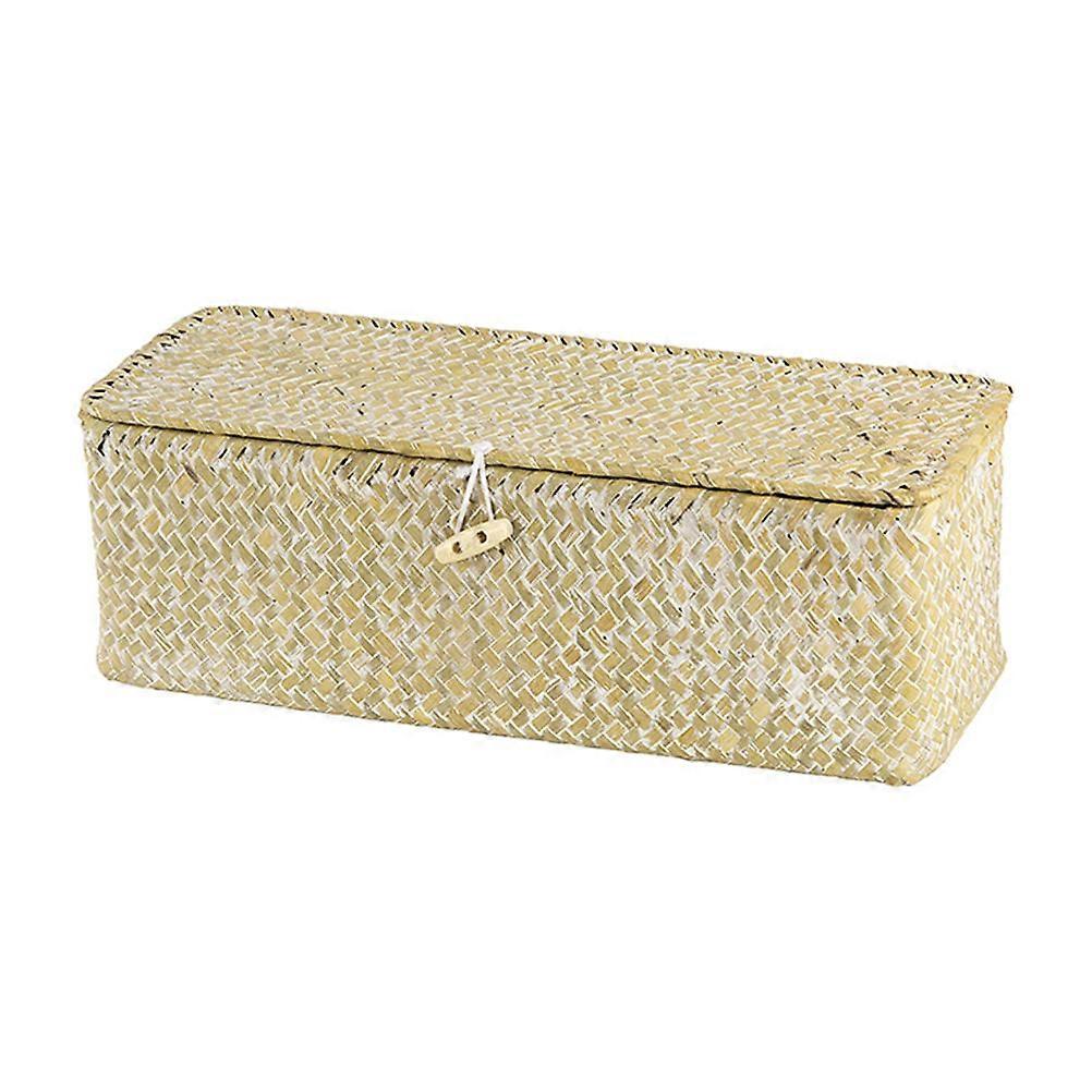 Lidded Woven Storage Basket For Desktop Organization Suitable For Bedroom 32x12cm Assorted Color Designed For Home Users 1Pcs