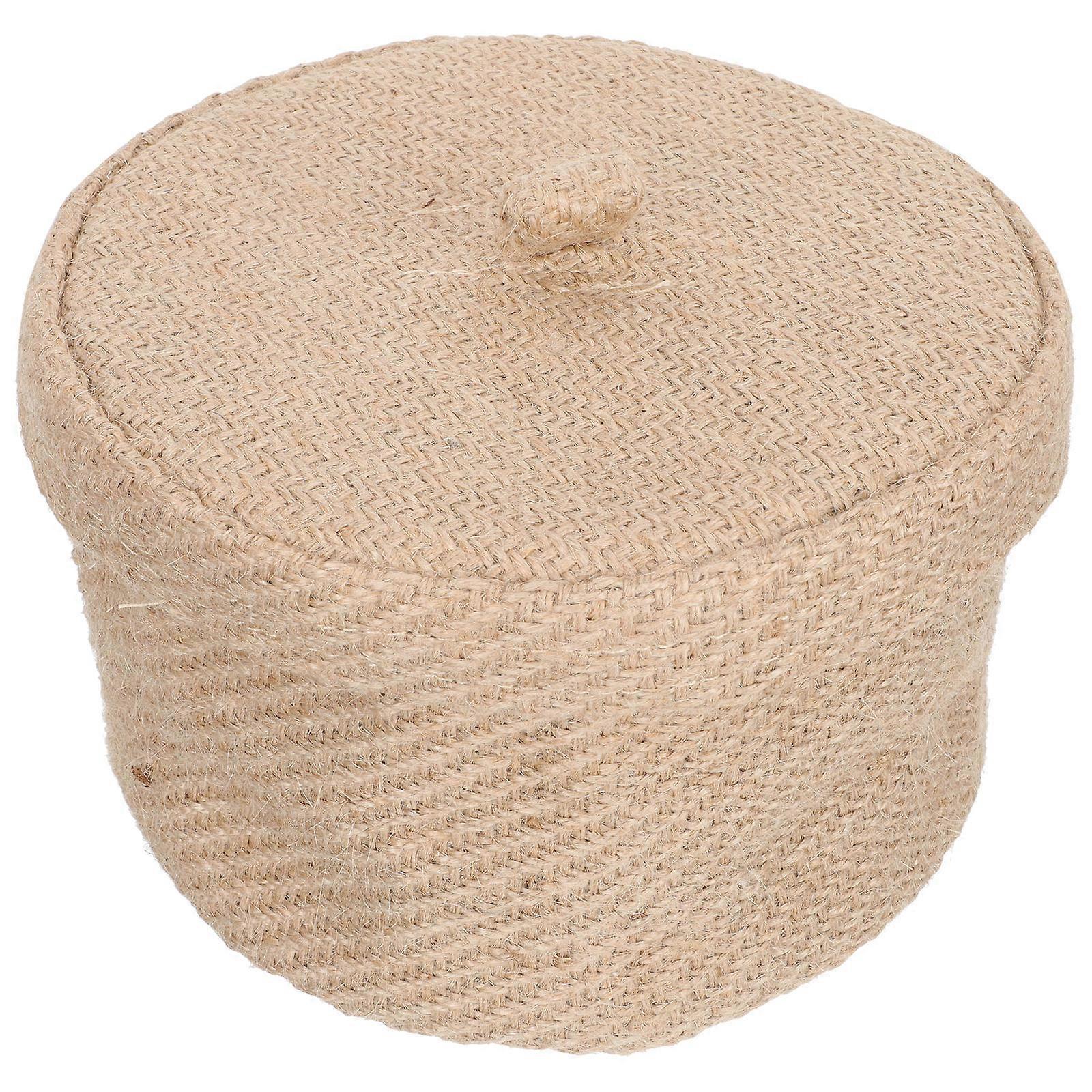 Compact Woven Storage Basket with Lid – Jute Cotton Household Organizer for Cosmetics, Snacks, and Desktop Essentials – Decorative Bin for Home and