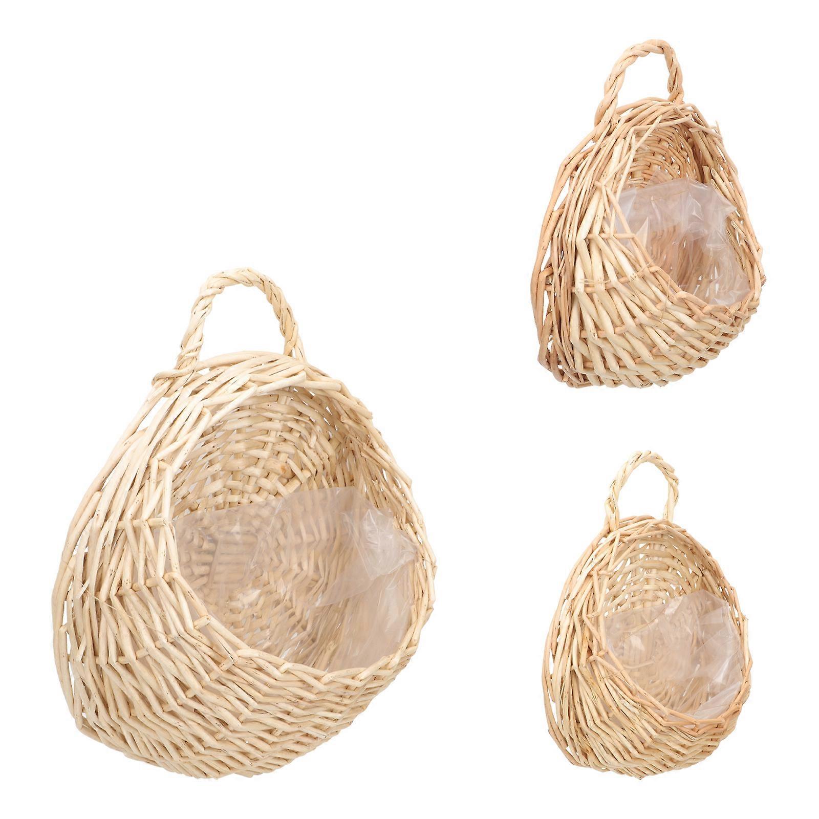 Beige Woven Wall Flower Basket for Home Decoration and Storage Use, Synthesis Material, 3Pcs