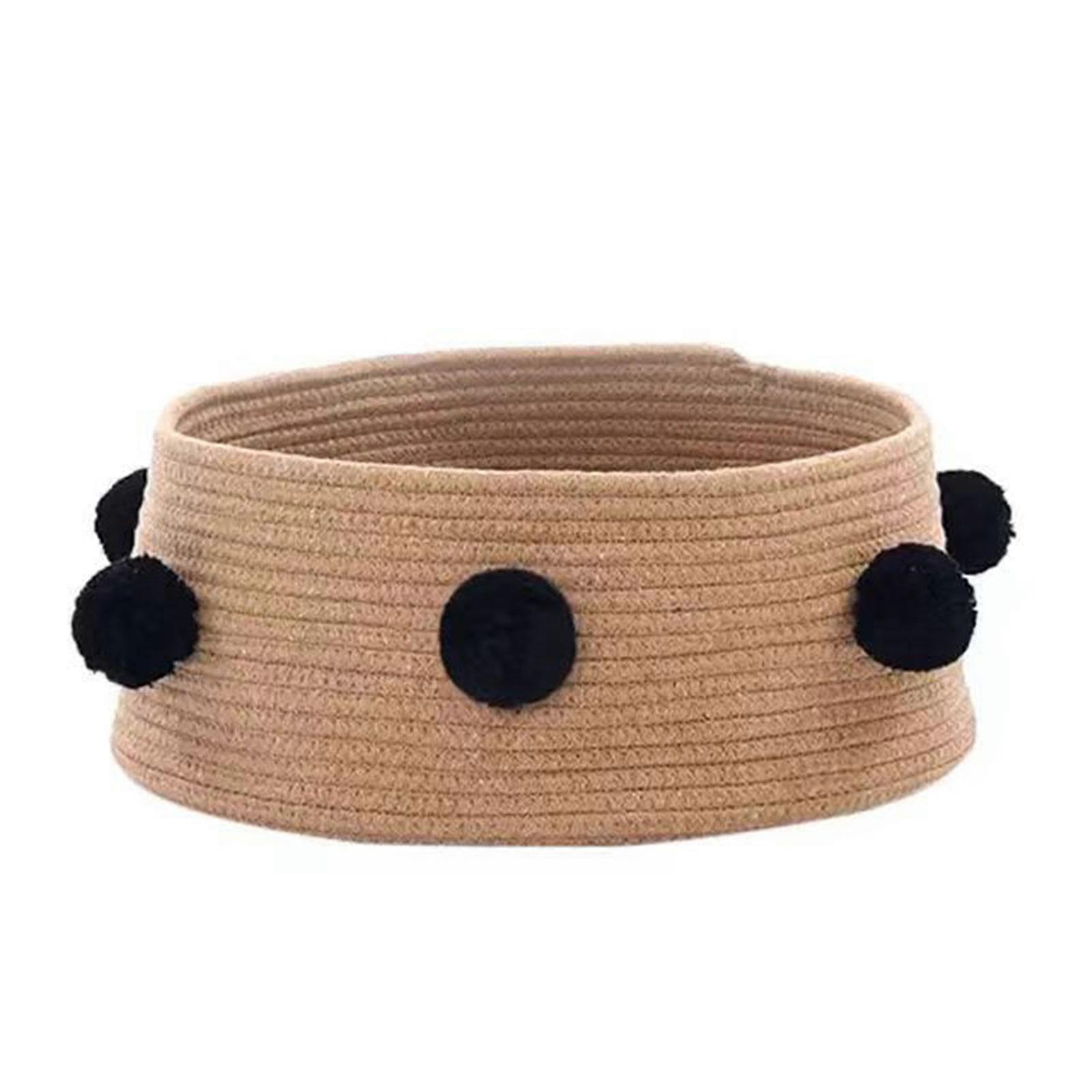 Cat Bed Basket Small Round Nest with Pompoms Decor Cotton Woven Washable Handmade Pet Sleeping House for Indoor Cats coffee color