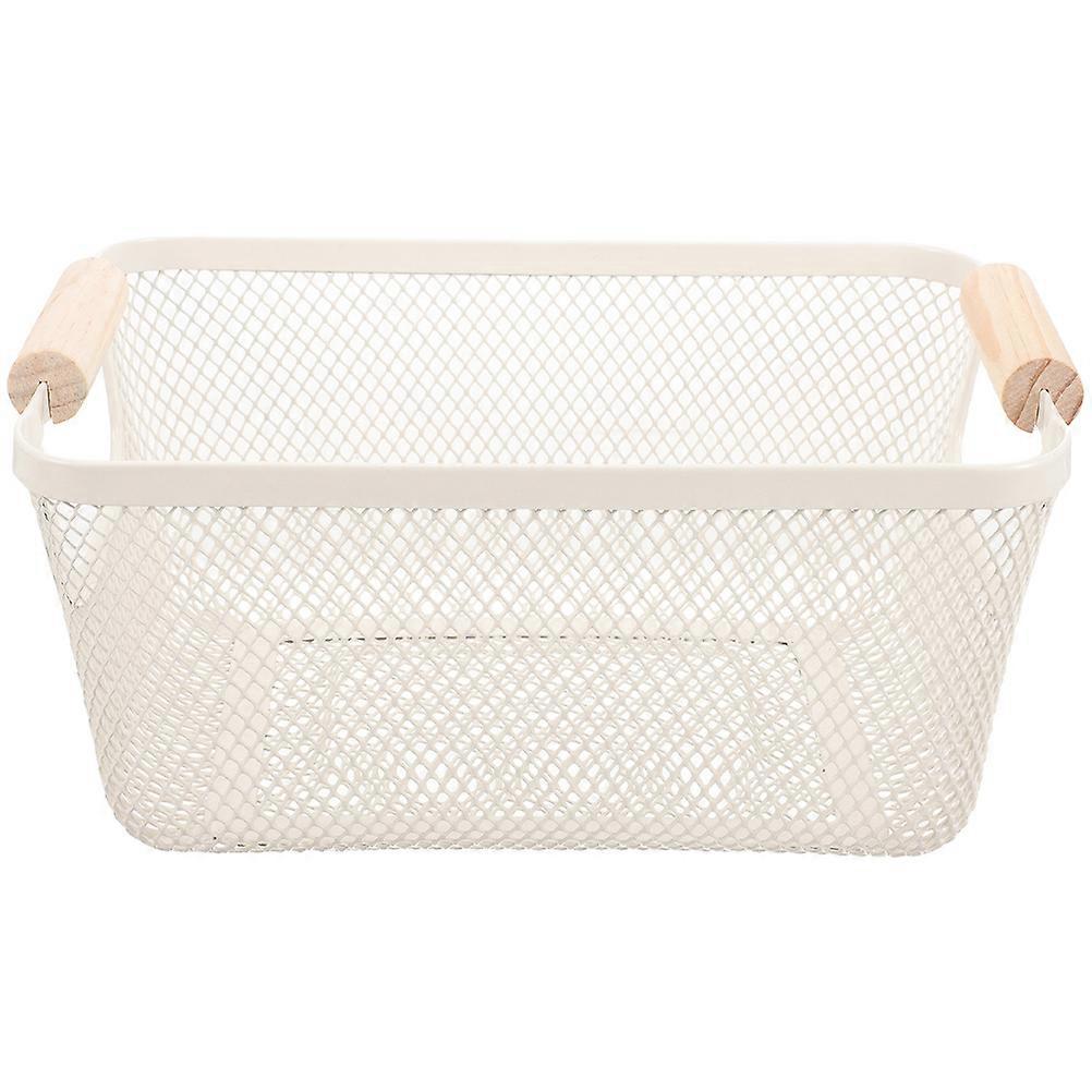 Wire Basket Decorative Storage Basket Wrought Iron Handheld Bathroom Rectangular White 33.5X21CM Storage 1Pack