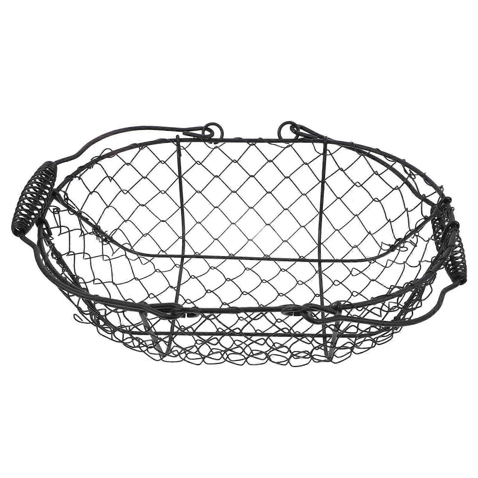 Spacious Metal Wire Basket with Handle for Fresh Eggs, Vegetables Storage and Kitchen Organization Easy Carry Iron Organizer for Home and