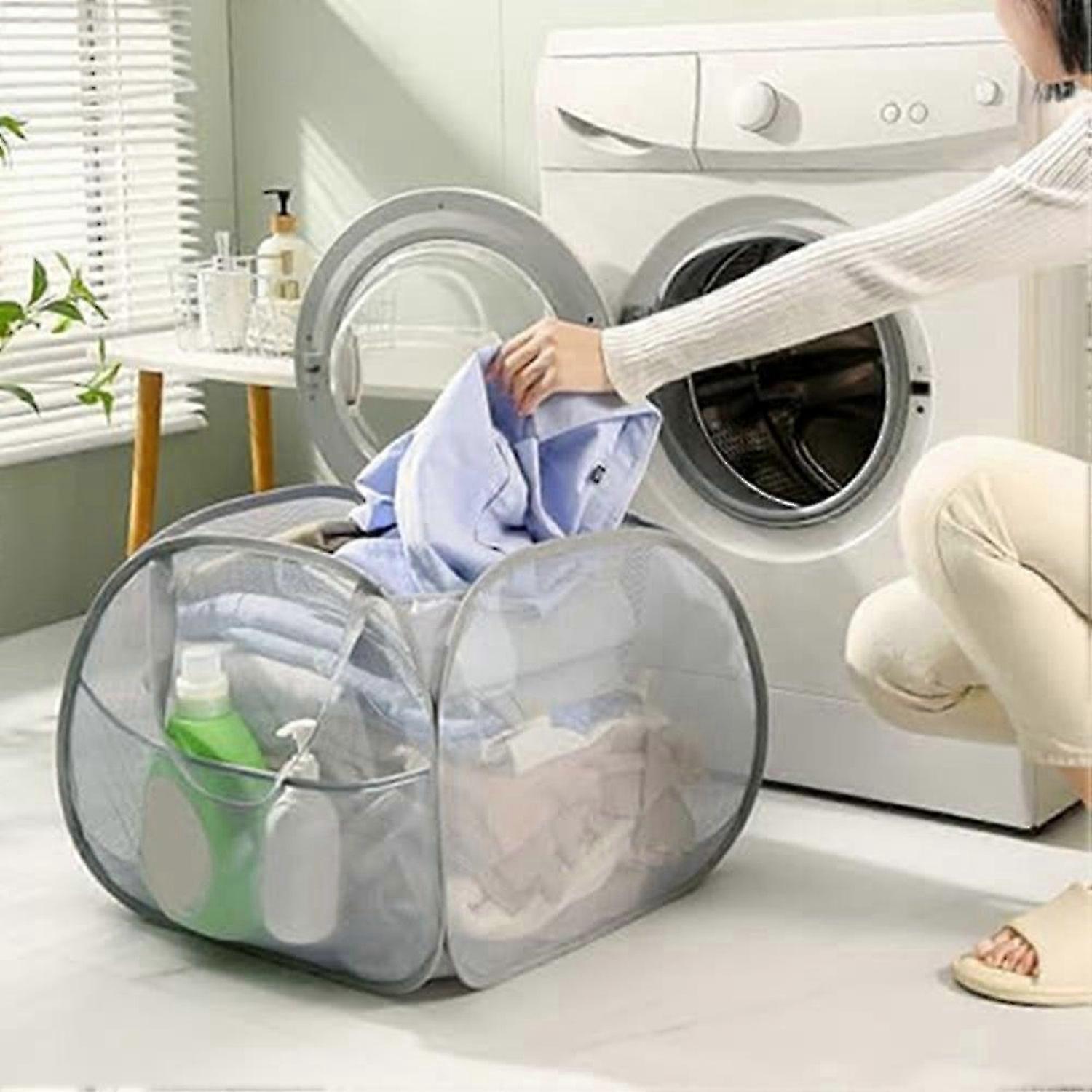 Collapsible Mesh Pop-Up Laundry Hamper with Handle, Storage Baskets-D