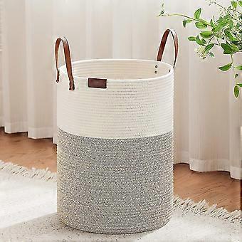 Tall Laundry Basket, Large Dirty Clothes Hamper With Leather Handle, Woven Rope Storage Basket For Blanket, Toy In Living Room, Bathroom, Bedroom - 58