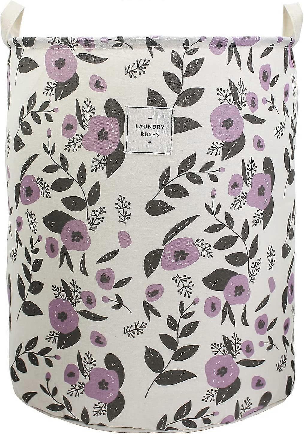 Collapsible Laundry Basket, Floral Printing Large Laundry Hamper for Baby Girls Kids Toys Clothes Organizer Foldable Storage Bin Waterproof Canvas Nur