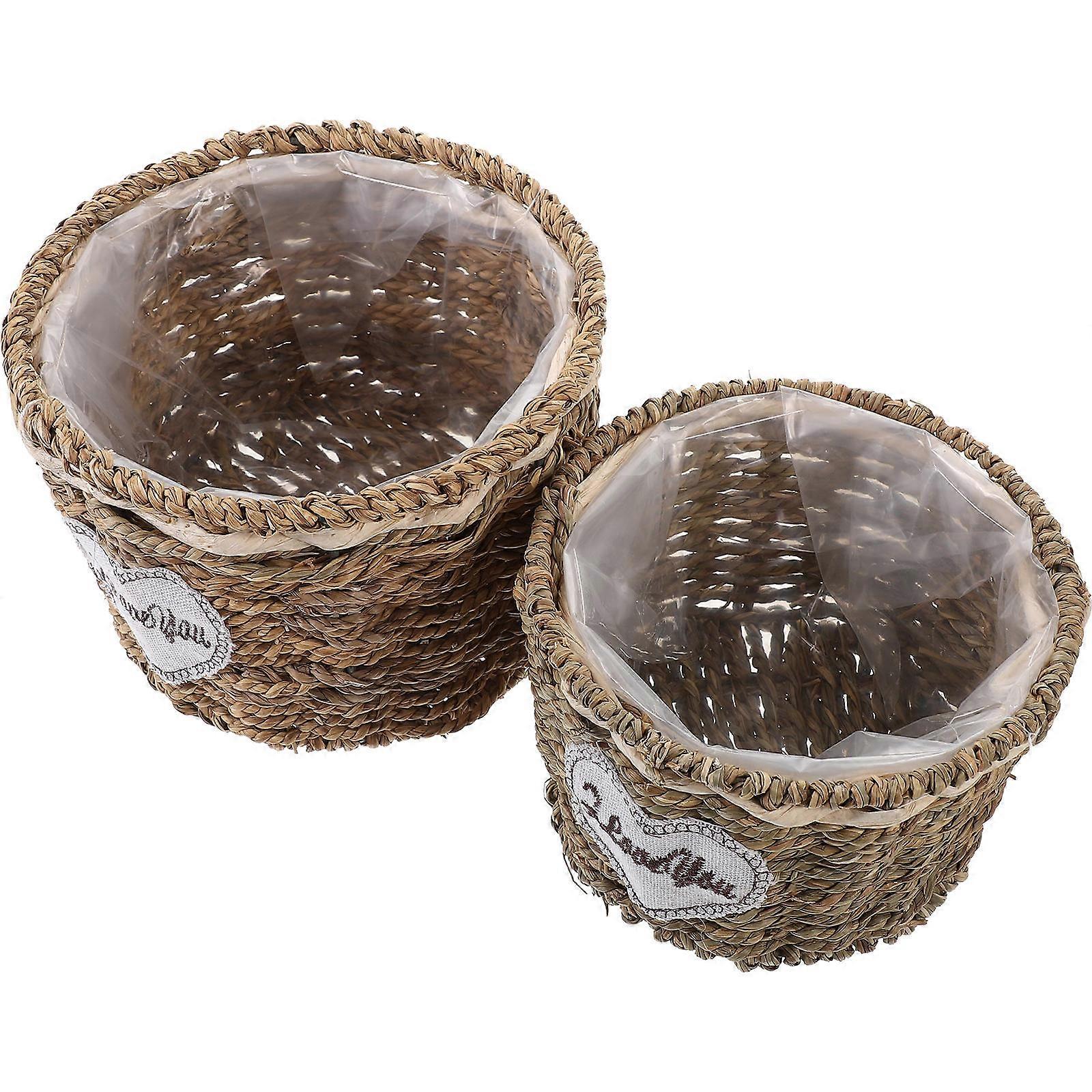 Woven Basket Creative Woven Flower Pot Holder Assorted Color 17x12cm Storage 2Pcs