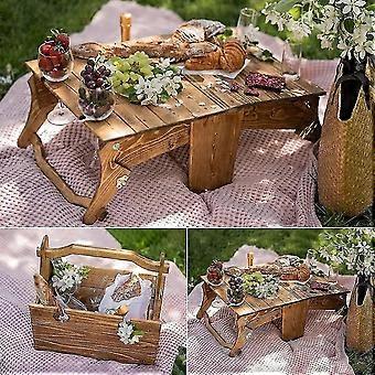 سلة نزهة خشبية قابلة للطي في الهواء الطلق ، طاولة نزهة نبيذ محمولة ، طاولة نزهة 2 في 1 ، سلة تخزين خشبية قابلة للتحويل للنزهة الخارجية أو الداخلية