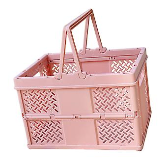 Foldable Picnic Basket Medium Shopping Basket for Barbecue Household Outdoor Pink
