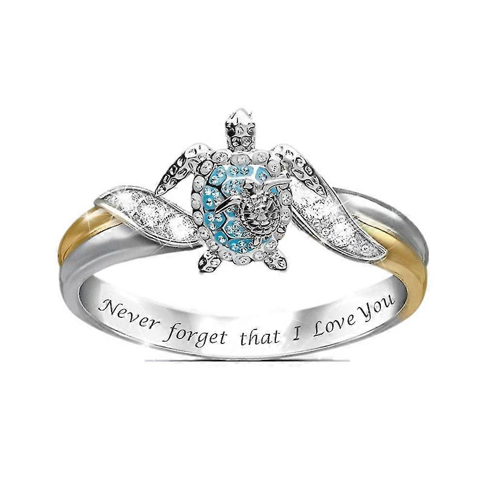 Turtle Ring Mom Loves You Forever Turtle Ring Sea Turtle Crystal Studded Jewelry