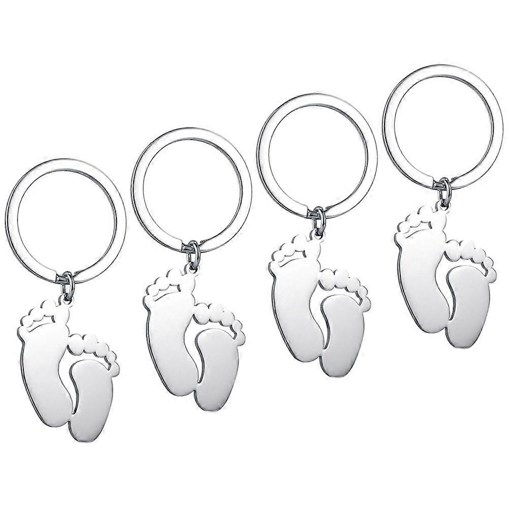 Footprint Keychain For Boys Baby Footprint Keychain Bag Accessory Silver 5 5x2cm Decorative 4Pcs