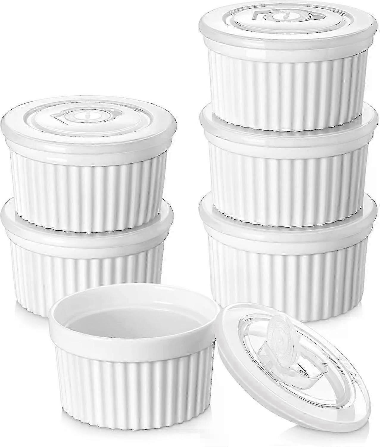 Ramekins with Lid, Set of 6 10 Oz Porcelain Creme Brulee Souffle Dishes, White