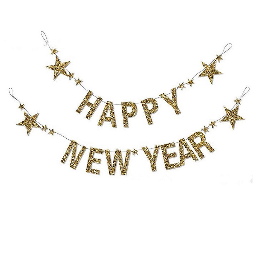 Happy New Year Party Decoration Banner Golden Glitter Star For Home Office Shopping Mall 1Set