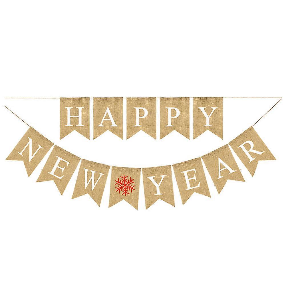 Happy New Year Banners Burlap Banner Wall Hanging Multi Color Swallowtail Shape Party Supplies 18 x 13 x 2cm 1Set