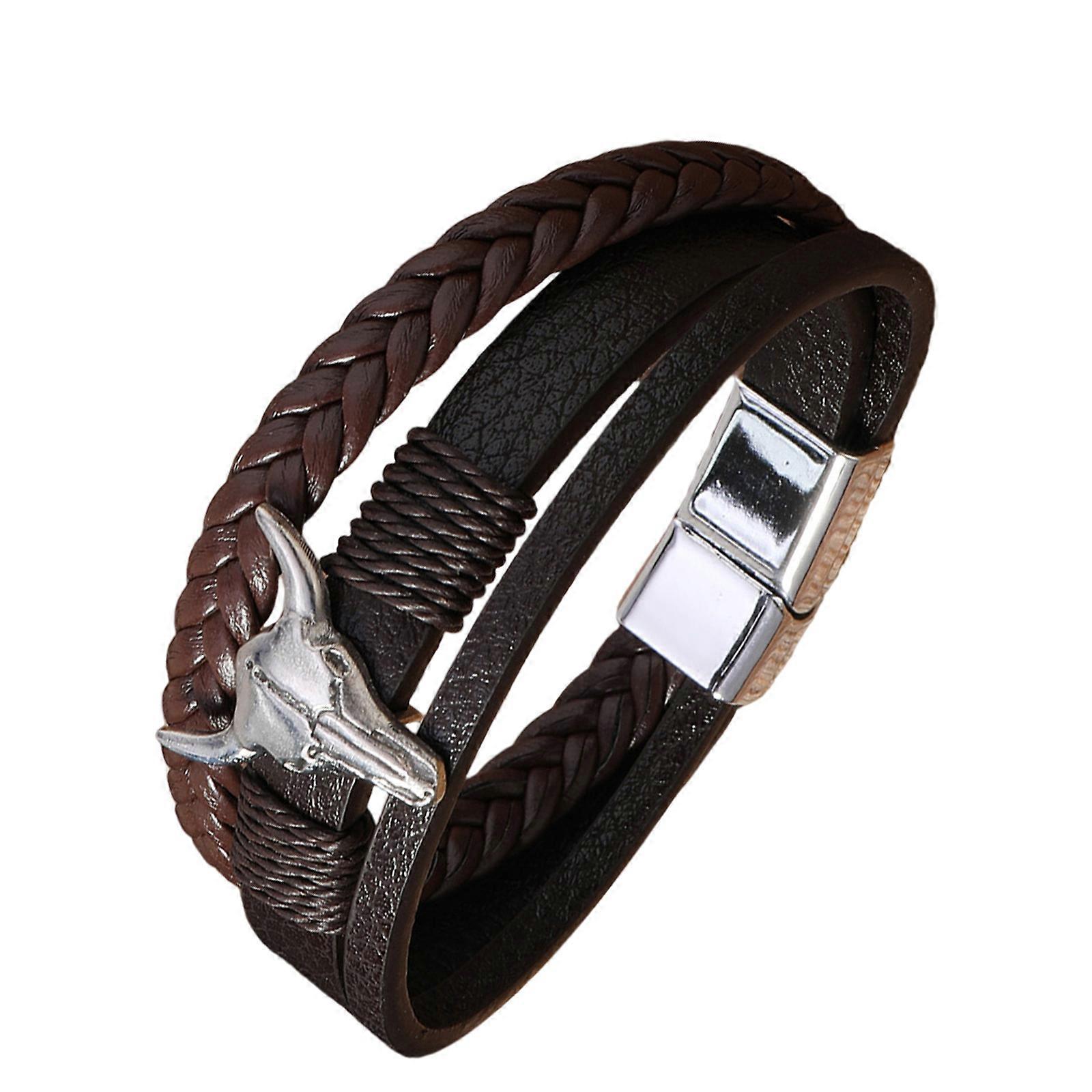 Retro Bracelet PU Leather Wristband Handwoven Magnetic Clasp Bangle Unisex Accessory for Casual or Formal Deep coffee