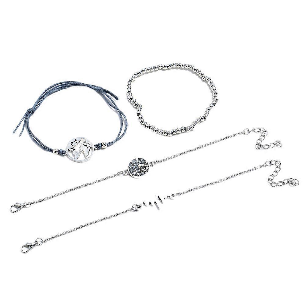 Heart Bracelet World Map Decor Beads Charm Classic Style Ladies Teens All Seasons Alloy Material Friendship Bracelet 4Pcs