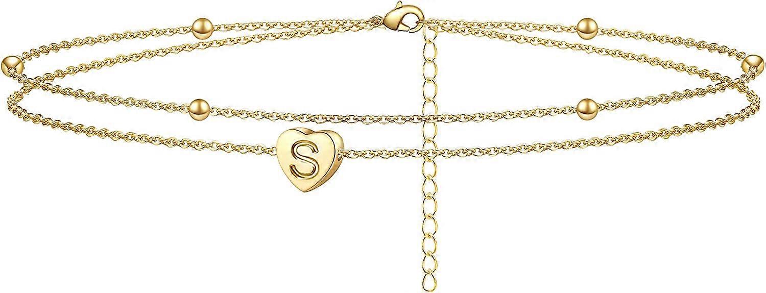 Initial Heart Ankle Bracelet Layered Heart Letter A To Z Bead Chain Anklet for Women 14K Real Gold Plated Beach Jewelry