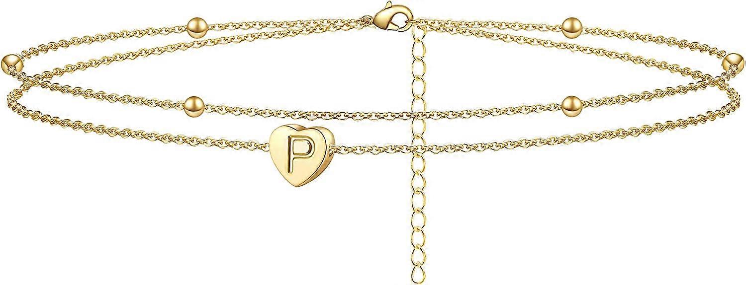 Initial Heart Ankle Bracelet Layered Heart Letter A To Z Bead Chain Anklet for Women 14K Real Gold Plated Beach Jewelry
