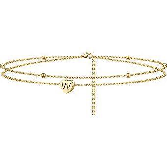 Initial Heart Ankle Bracelet Layered Heart Letter A To Z Bead Chain Anklet for Women 14K Real Gold Plated Beach Jewelry