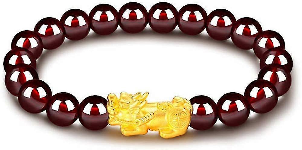 Feng Shui Amulet Bracelet 8mm Red Garnet Bead Bracelet With 1 Gold Plated Pi