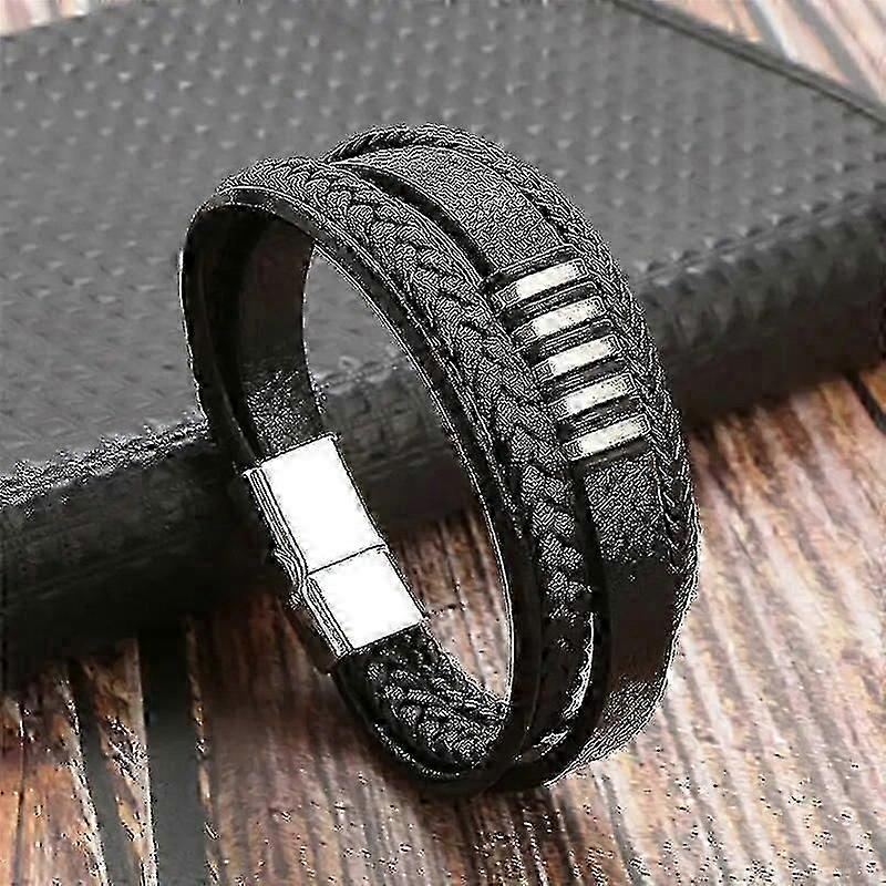 Men's Leather Multi-Layer Bracelet with Stainless Steel - Fashionable Handwoven Bracelet for Men