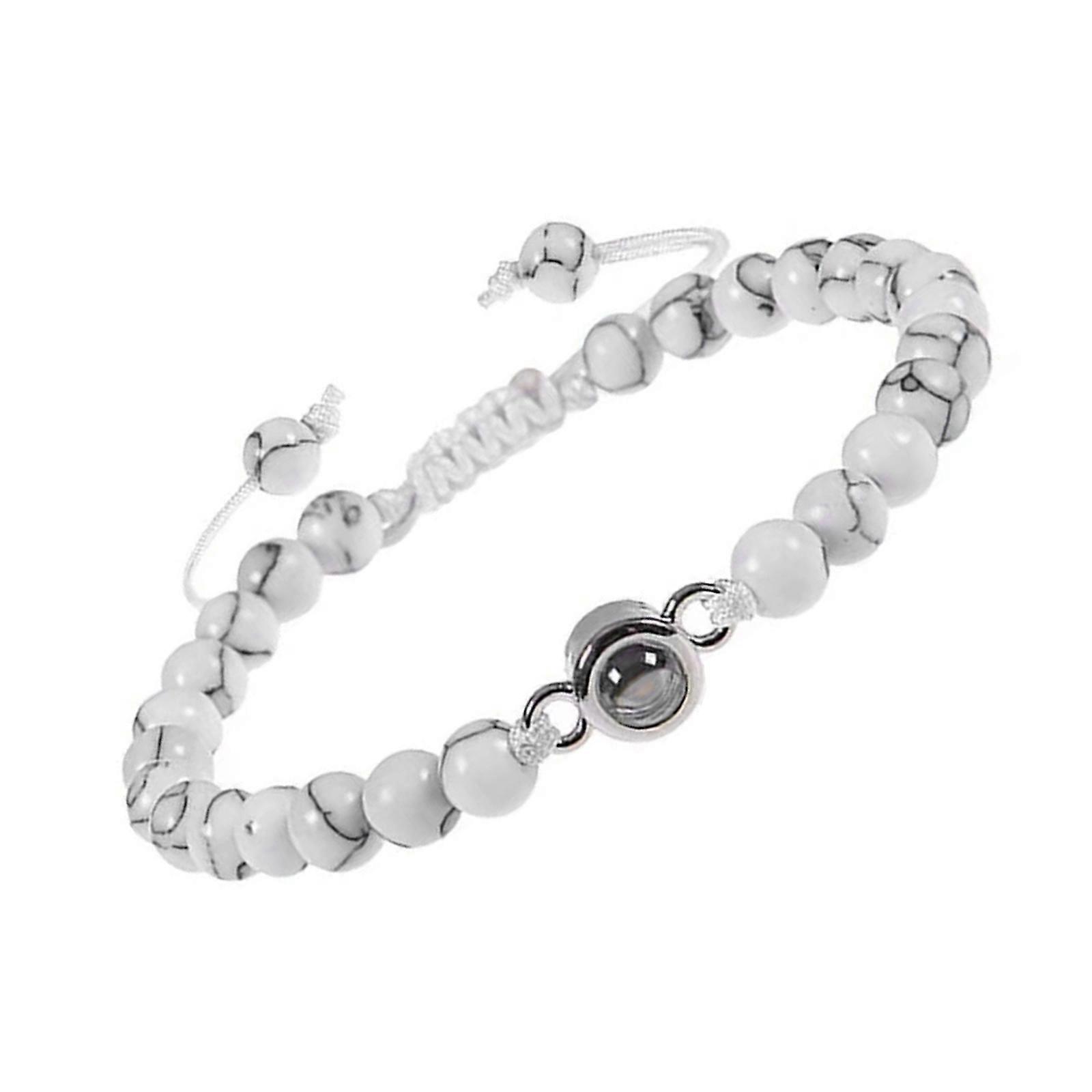 Unique Mattes Stone Bracelet with 100 Languages I Loves You Projection Designs for Romance Celebrations Ornament White