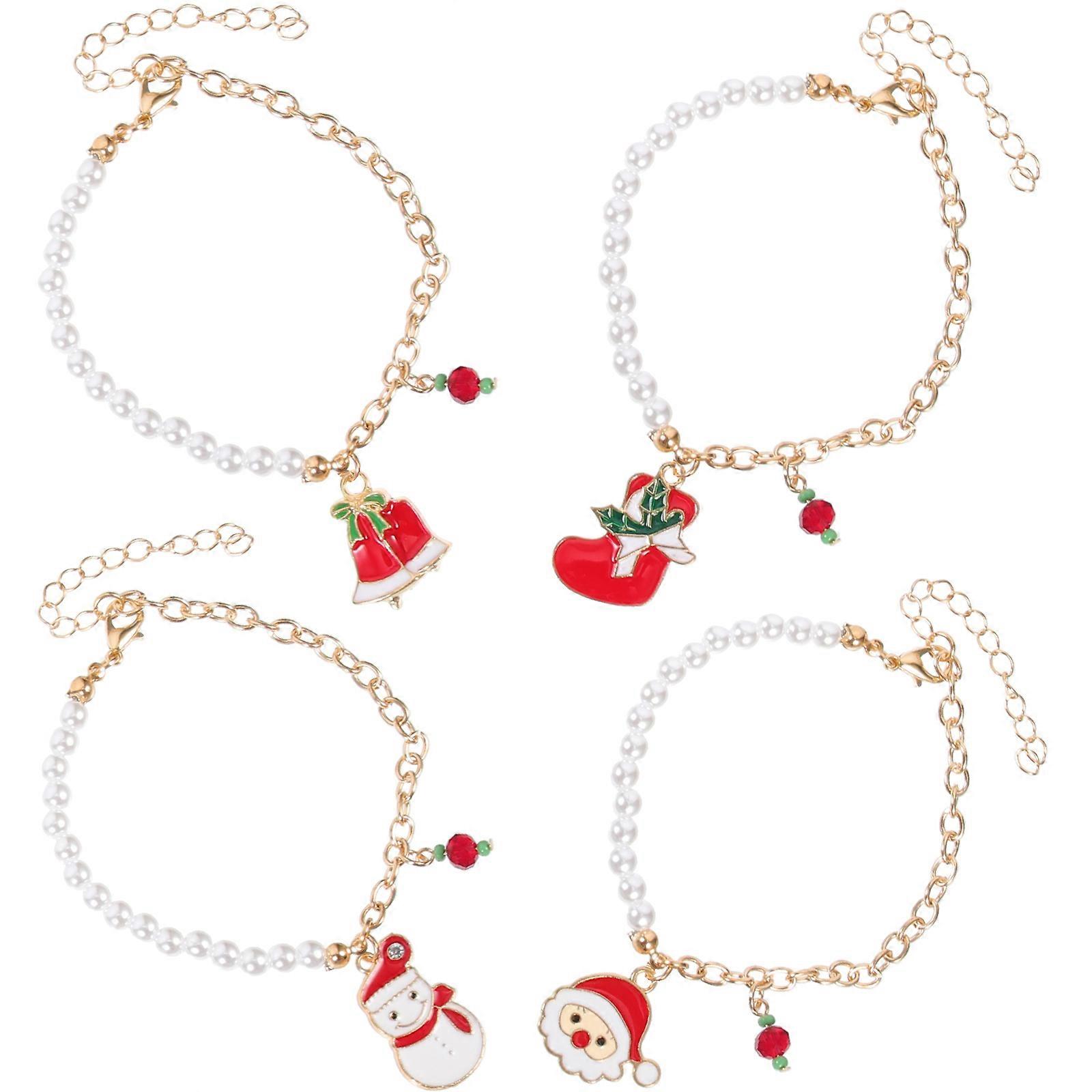 Christmas Party Alloy Bracelet 4Pcs Round Shape For Wristwear Decorative Colleagues And Classmates