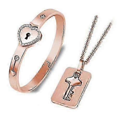Heart Lock Bracelet & Key Necklace Set for Couples - Ideal Anniversary Gift