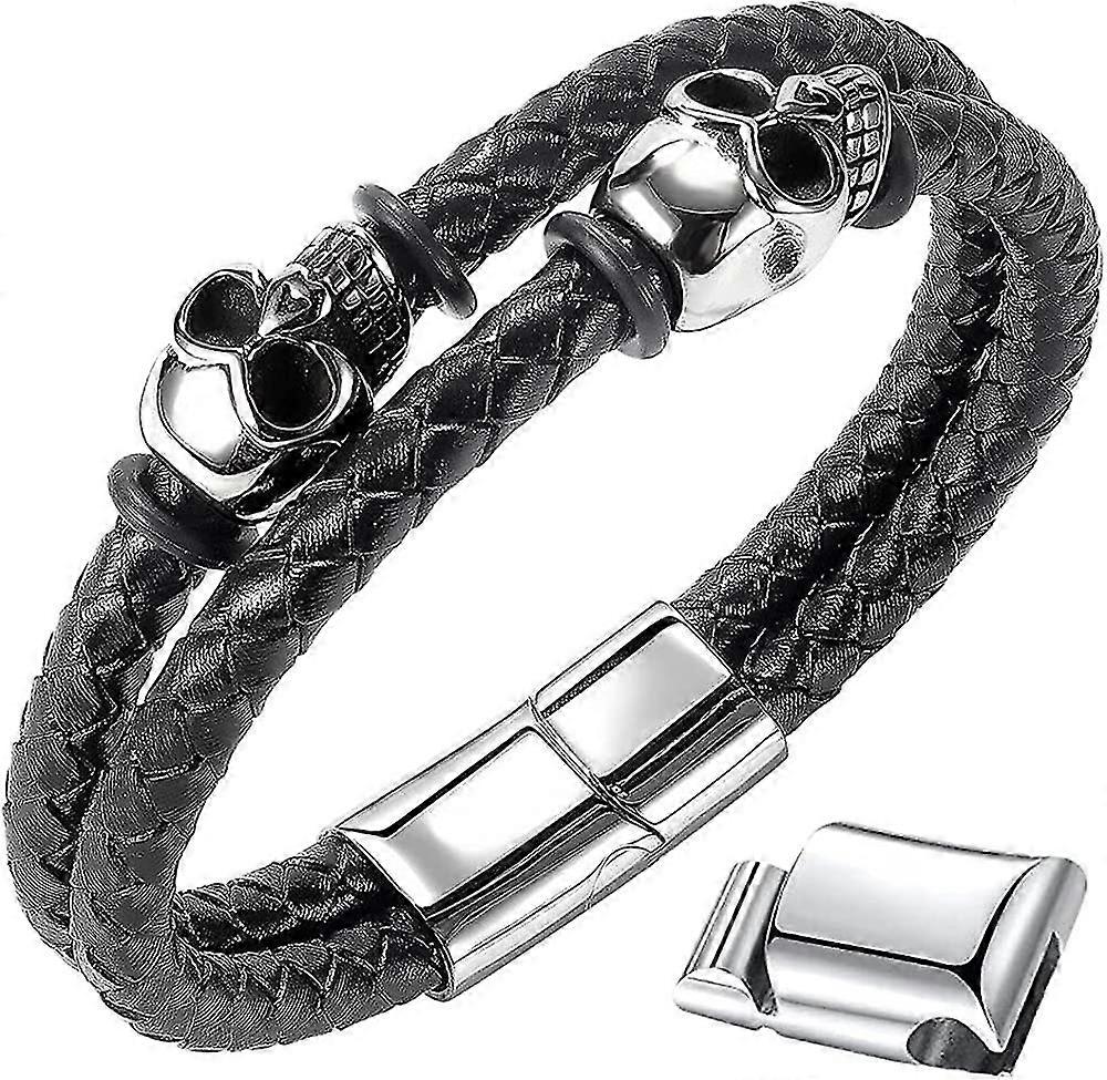 Men's Bracelet Skull Genuine Leather Bracelet For Heilwiy Men Black Magnetic Clasp Made Of Stain