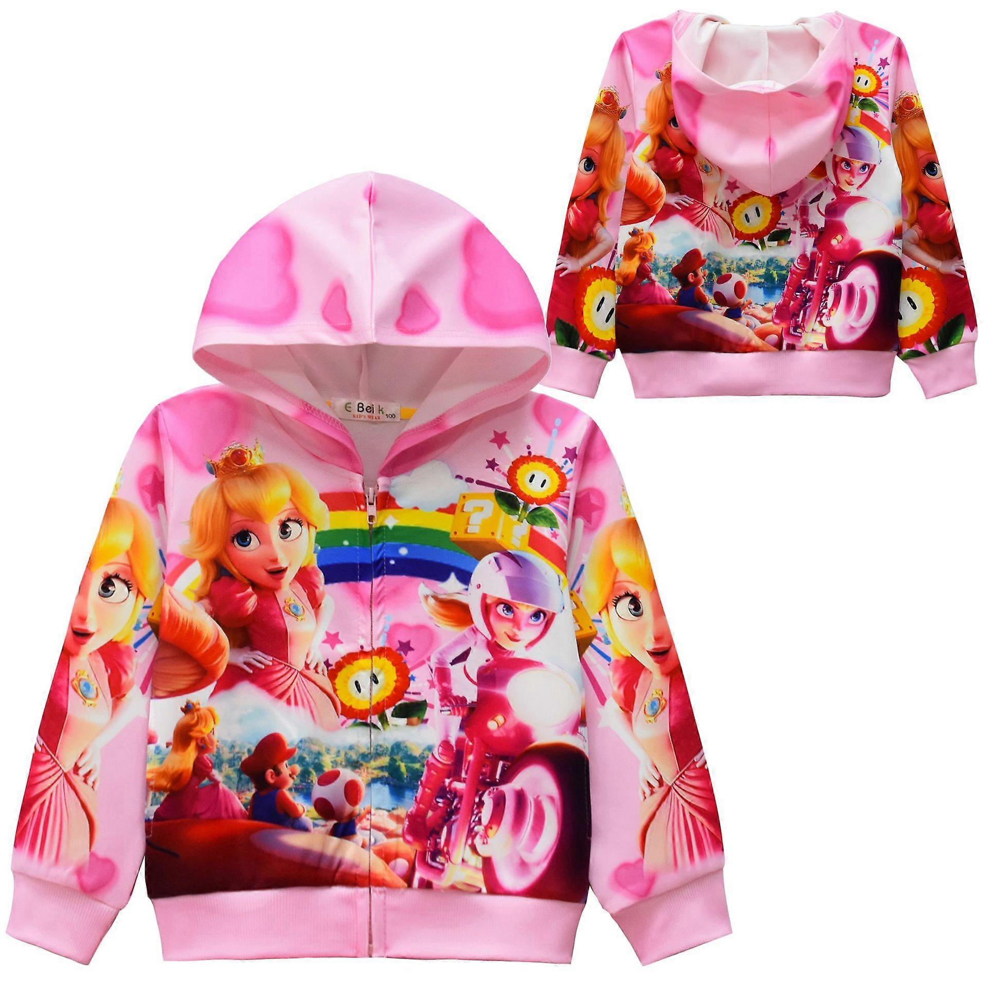 Super Mario Bros Princess Peach Coat Zip Up Hooded Hoodie Kids Girls Jacket Casual Long Sleeve Outerwear