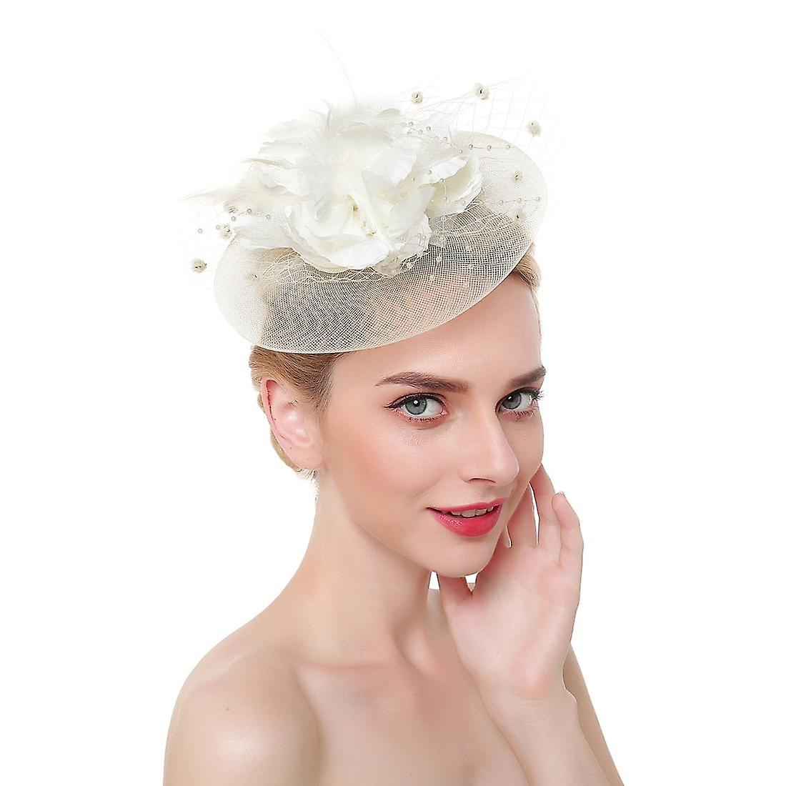 Lady Flower Pillbox Fascinator Hat for Tea Party, Women Feathers Veil Mesh Headband with Hair Clip H
