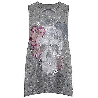 Vans Off The Wall Round Neck Grey Sleeveless Graphic Womens Sketchy Skull Top