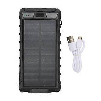 شاحن الهاتف الشمسي المحمول 20000mAh بنك الطاقة الشمسية مع بوصلة ومصباح يدوي LED للأسود في الهواء الطلق