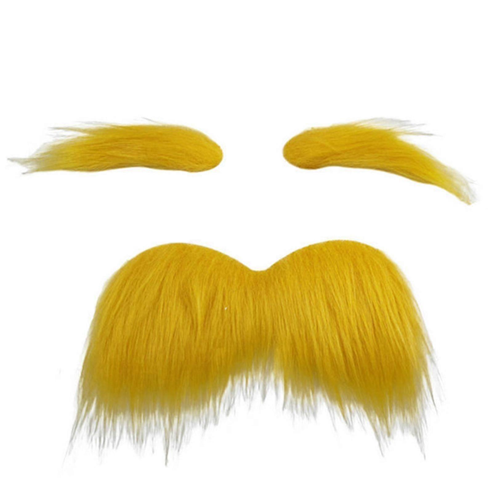 Funny Yellow Gentleman's Mustache & Eyebrows - 3-Piece Self-Adhesive Costume Props for Masquerades, Dress-Up, and Cosplay