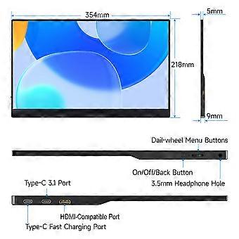15Inch Portable Monitor FHD1080P IPS Gaming Display Built-in Dual Speakers HDR Ultra-Slim External Display for Laptop/PC/Smartphones